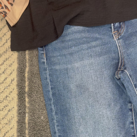 Elevate your wardrobe with this sophisticated black top, featuring striking leopard print accents on the collar and cuffs. The V-neck button-up silhouette offers versatile styling for both casual and polished occasions. Crafted from 100% polyester, this piece delivers easy care and lasting durability. Machine wash warm and tumble dry low for effortless maintenance. A modern essential that transitions seamlessly from day to evening.