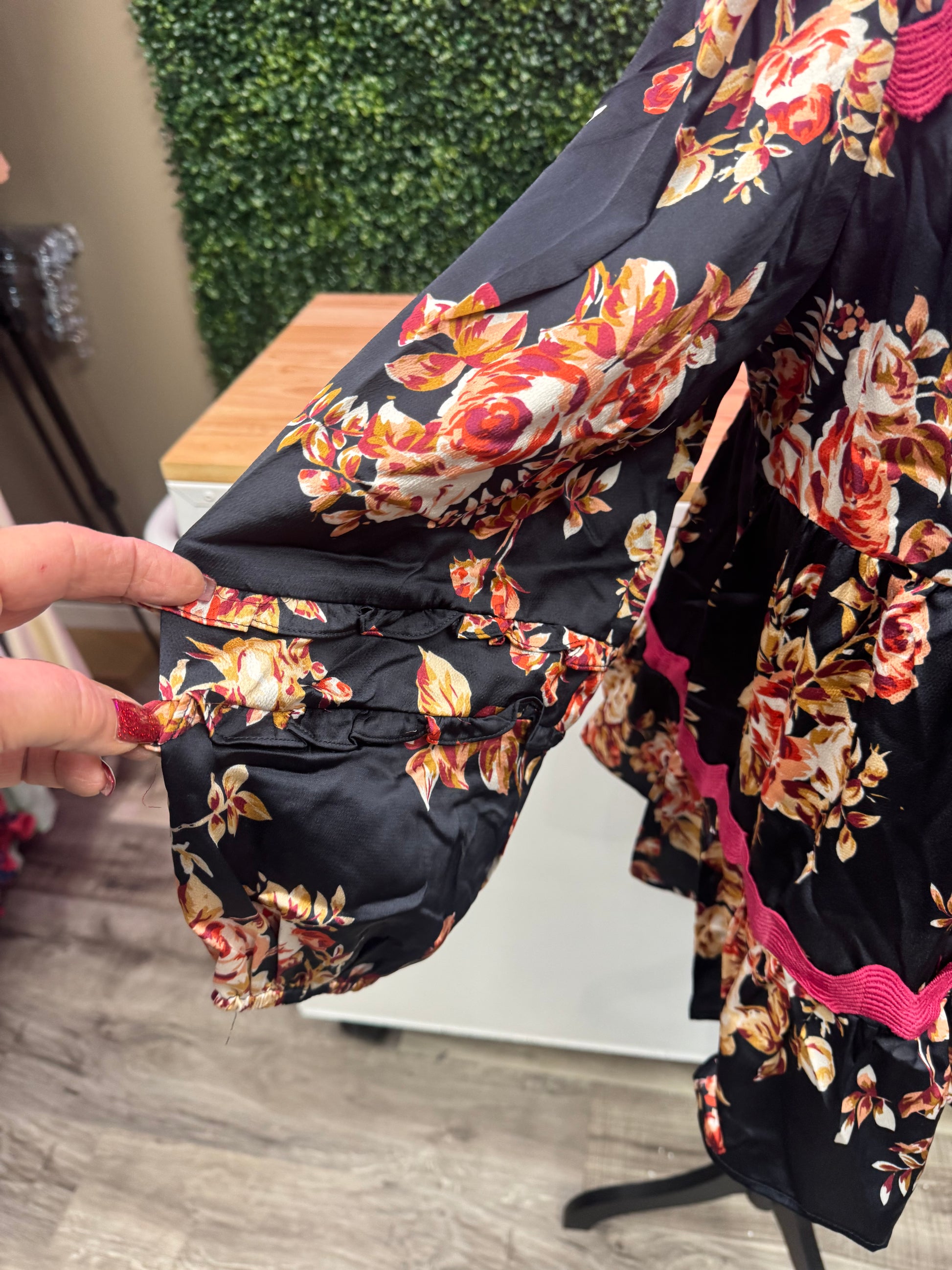 Mostly Midnight Top Elevate your wardrobe with this sophisticated V-neck blouse, designed for effortless elegance. Delicate ruffles frame the neckline and sleeves, while rick rack detailing adds subtle texture and visual interest. The fluid silhouette drapes beautifully for all-day comfort and versatile styling. Crafted from 100% polyester for easy care—simply hand wash cold and hang to dry. Perfect for layering or wearing solo, this piece transitions seamlessly from casual to polished occasions.